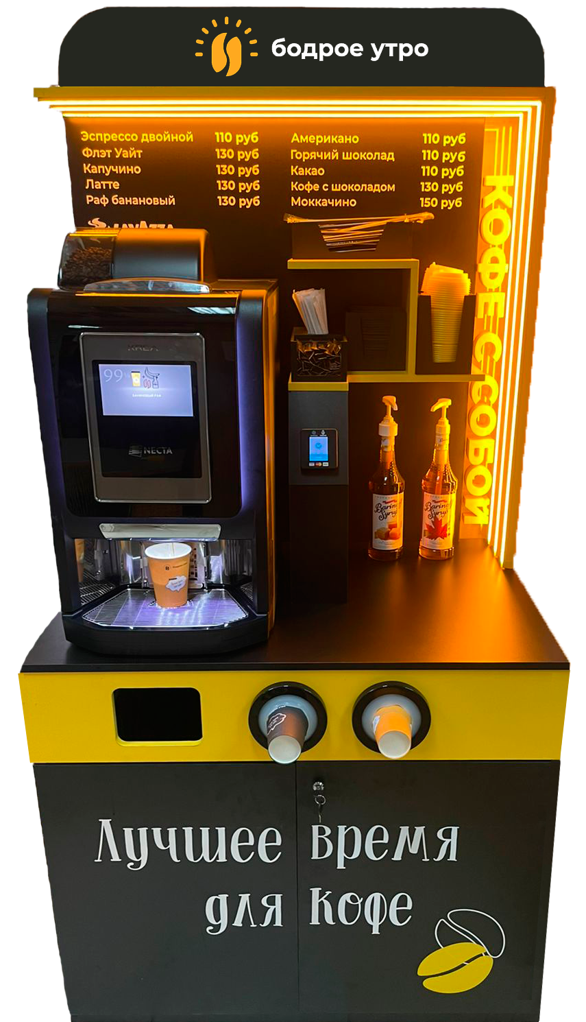 В нашем продукте соединились оригинальные дизайнерские решения, премиальные итальянские кофемашины и дружелюбный бренд в сочетании с качеством нашего продукта.